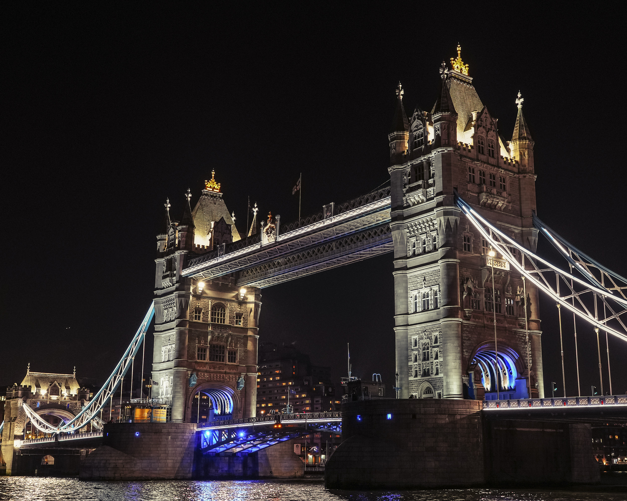 Tower Bridge bei Nacht © Matija Vincek | Sony α7CR + FE 24-50mm f/2.8 G | 1/15s @ f/4.0, ISO 1000