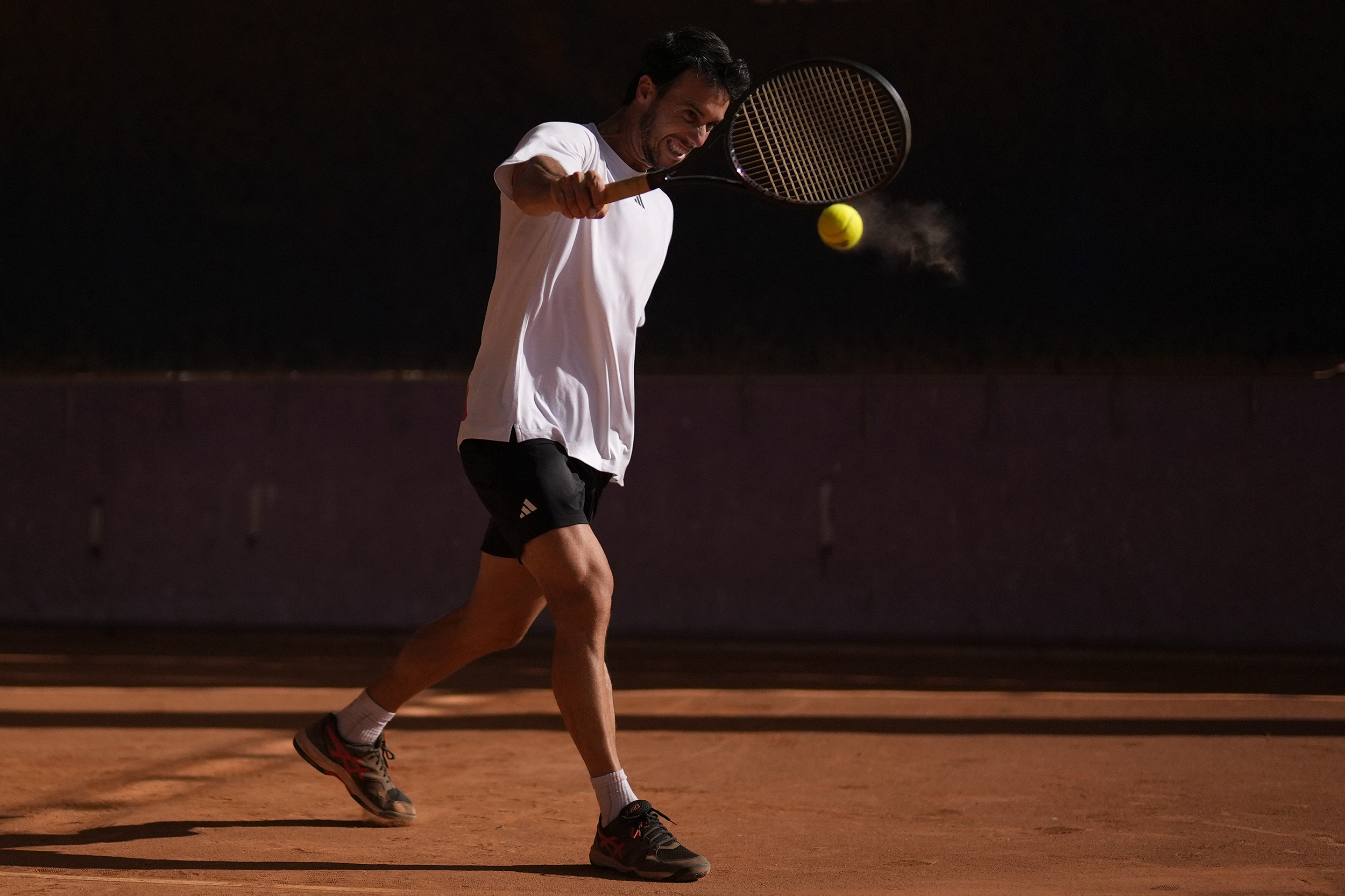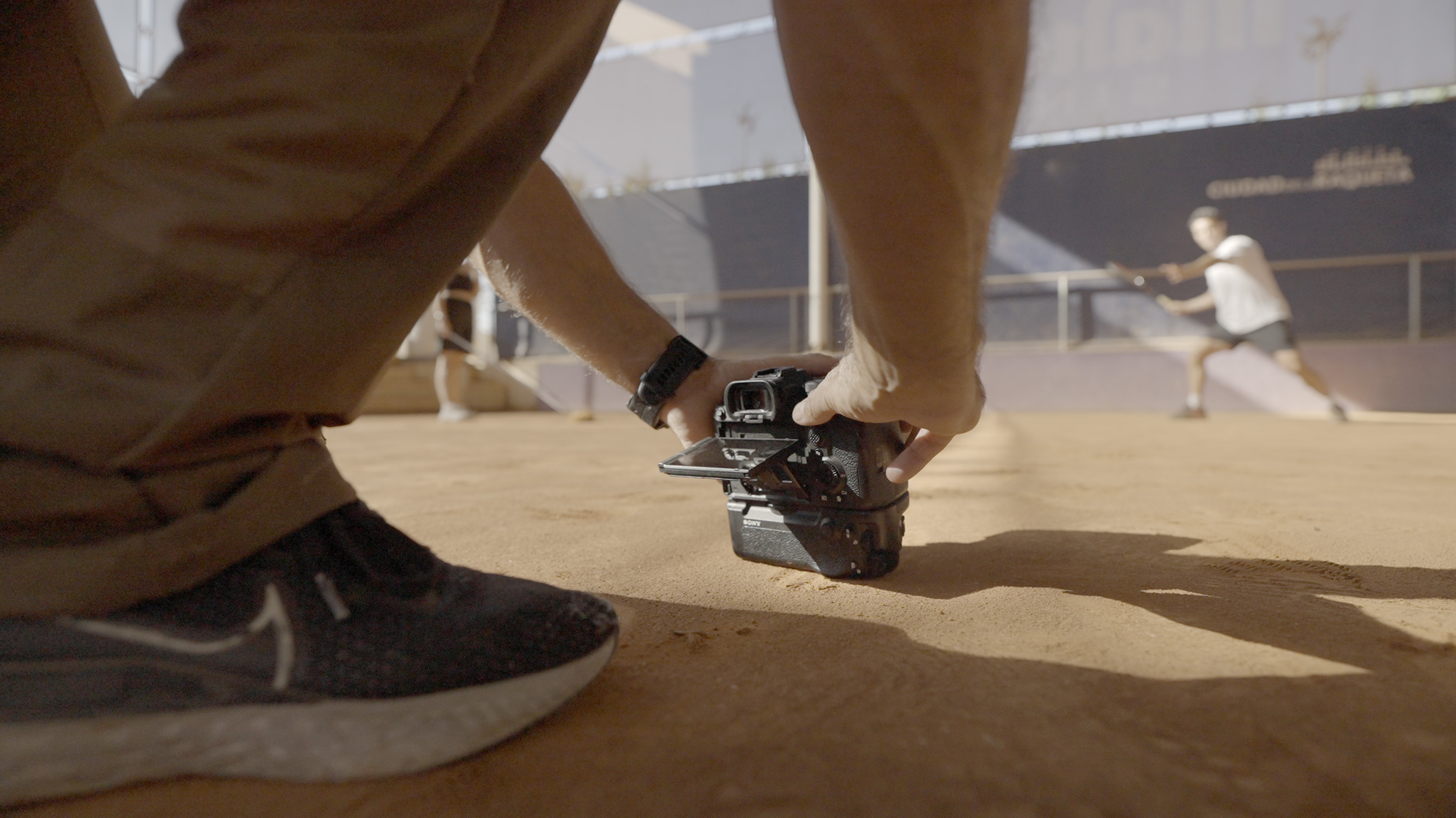 diego souto hält seine sony alpha 9m3 am boden, während er einen tennisspieler ablichtet