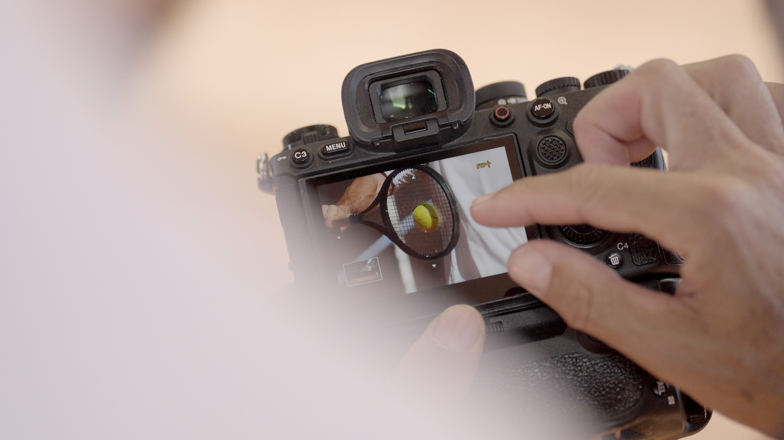diego souto schaut auf den bildschirm auf der rückseite seiner sony alpha 9m3