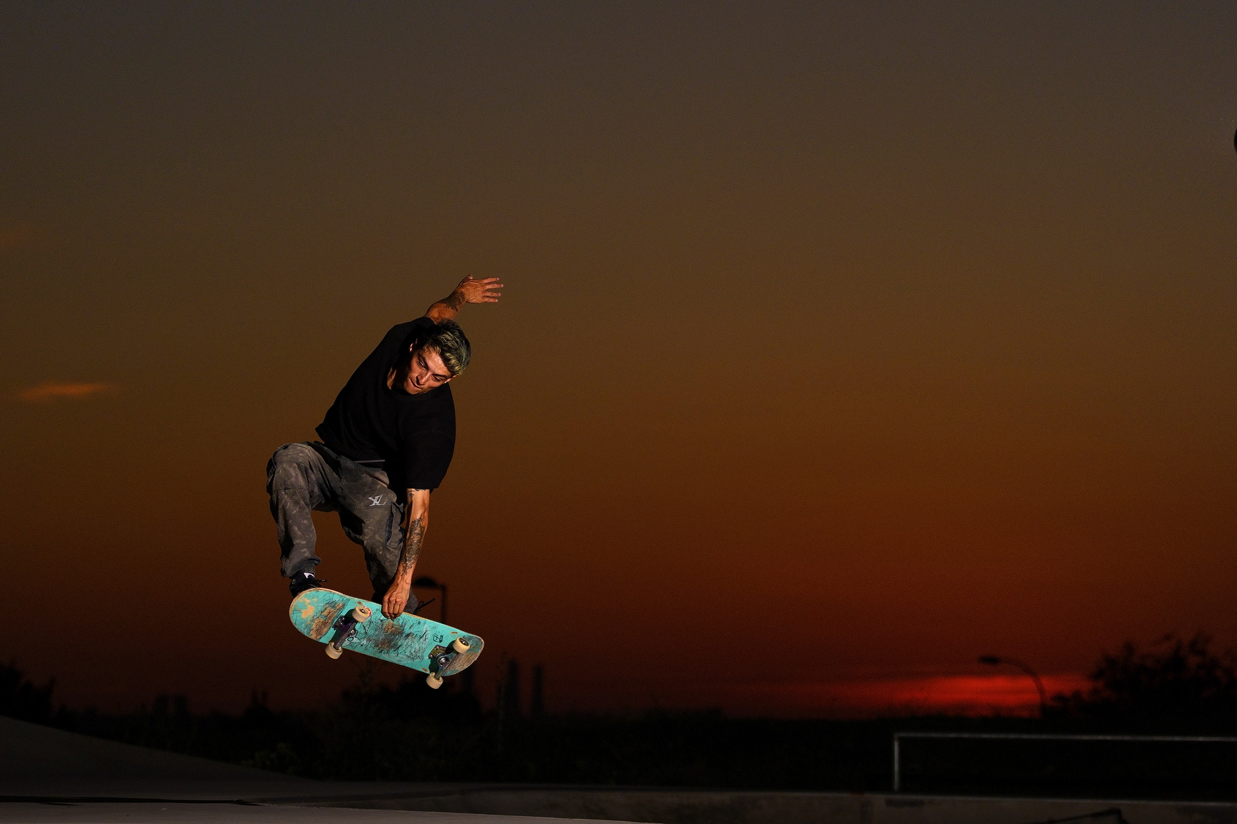 skateboarder in der luft vor dem sonnenuntergang © Diego Souto