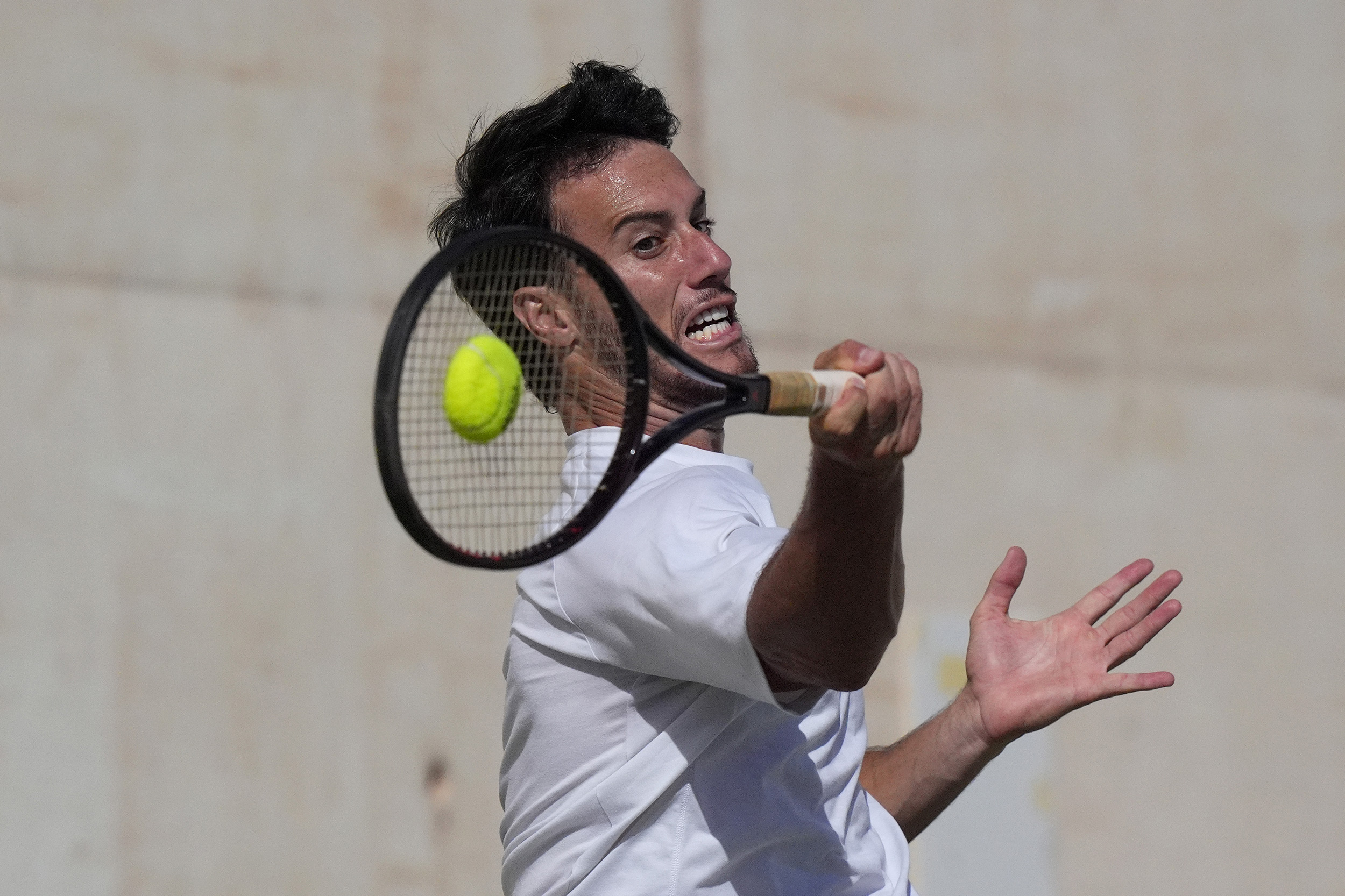 tennisspieler schlägt einen schnellen ball