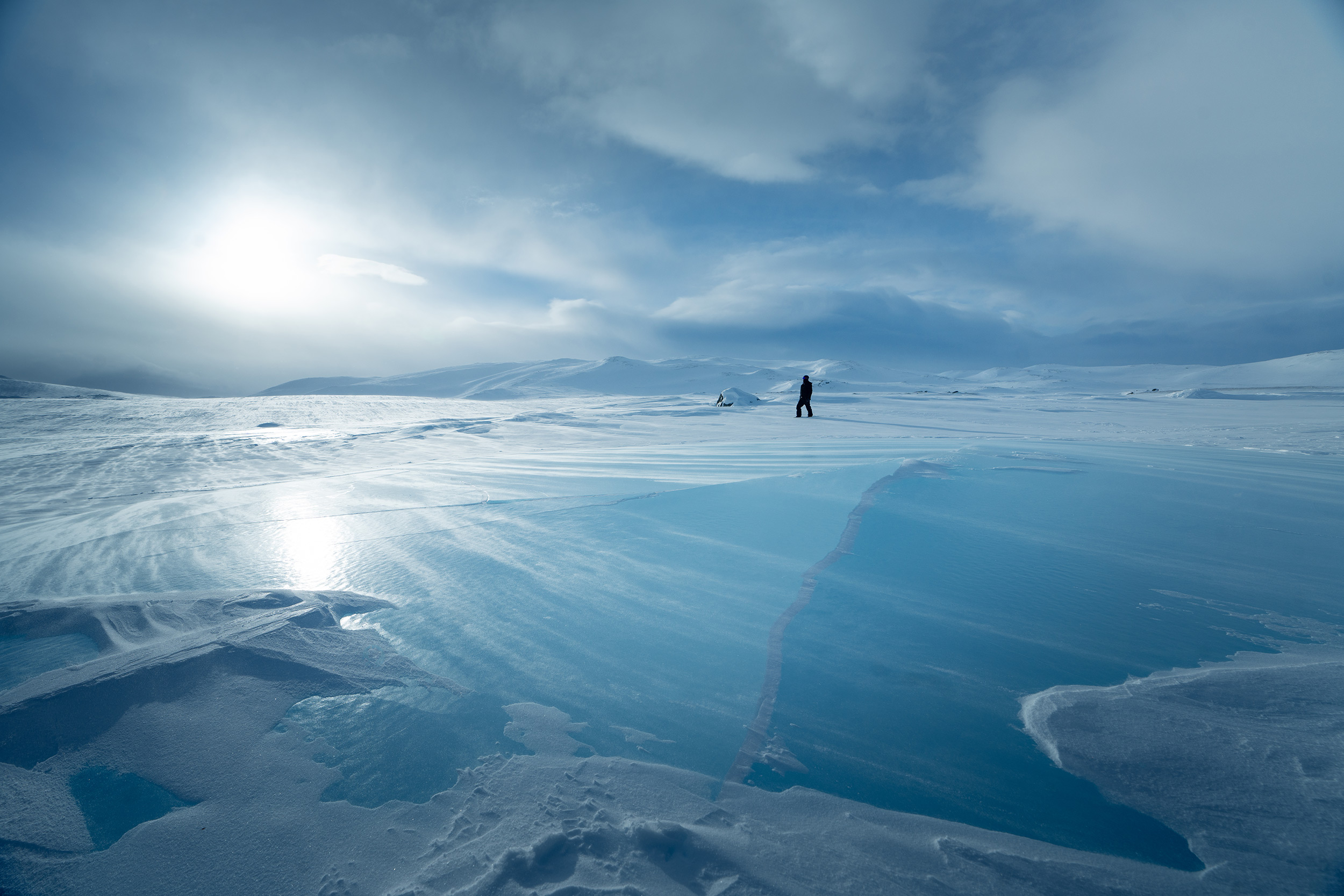 Am eindrucksvollsten sind vielleicht aber seine Bilder, die die Landschaft mit menschlicher Präsenz in Einklang bringen. Er erklärt: „Da draußen komponiere ich meine Aufnahmen oft mit Menschen, sei es mit mir selbst, einem Freund oder einem Mitglied der lokalen Sámi-Bevölkerung. So wird die Größe und oft auch die Härte der Wildnis in einen Kontext gesetzt und der Betrachter kann sich besser in meine Situation hineinversetzen. Sonst sind die Ansichten oft nur schwer zu erfassen.“