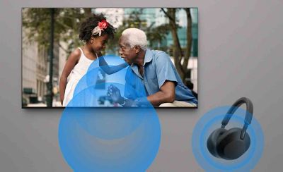 Fernseher mit simultaner Sound-Ausgabe: Sie hören eine Sendung über Kopfhörer und Ihr Partner dieselbe Sendung über die TV-Lautsprecher. Bei Bluetooth-Geräten können Sie auch die Lautstärke separat einstellen.0
