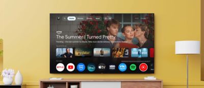 Ihr Fernseher erleichtert die Bedienung. Mit der freihändigen Sprachsteuerung können Sie Filme suchen, Apps streamen und Musik wiedergeben. Sie lassen sich Fragen beantworten, stellen Zimmertemperatur und Beleuchtung ein und sehen sogar nach, wer an der Haustür klingelt.0123