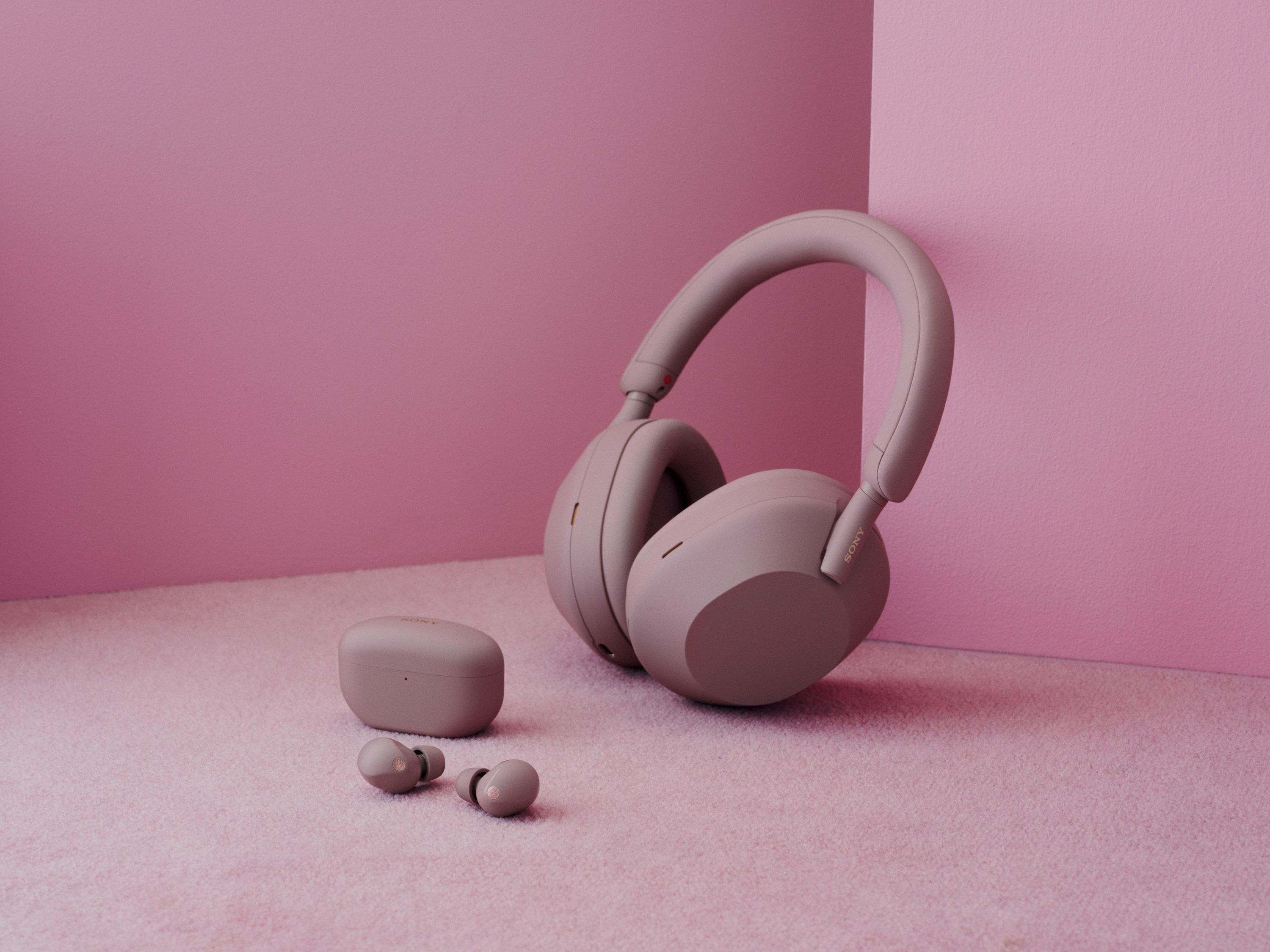 Hochauflösendes Bildmaterial zum WH-1000XM5 und WF-1000XM5 in Smoky Pink finden Sie hier.