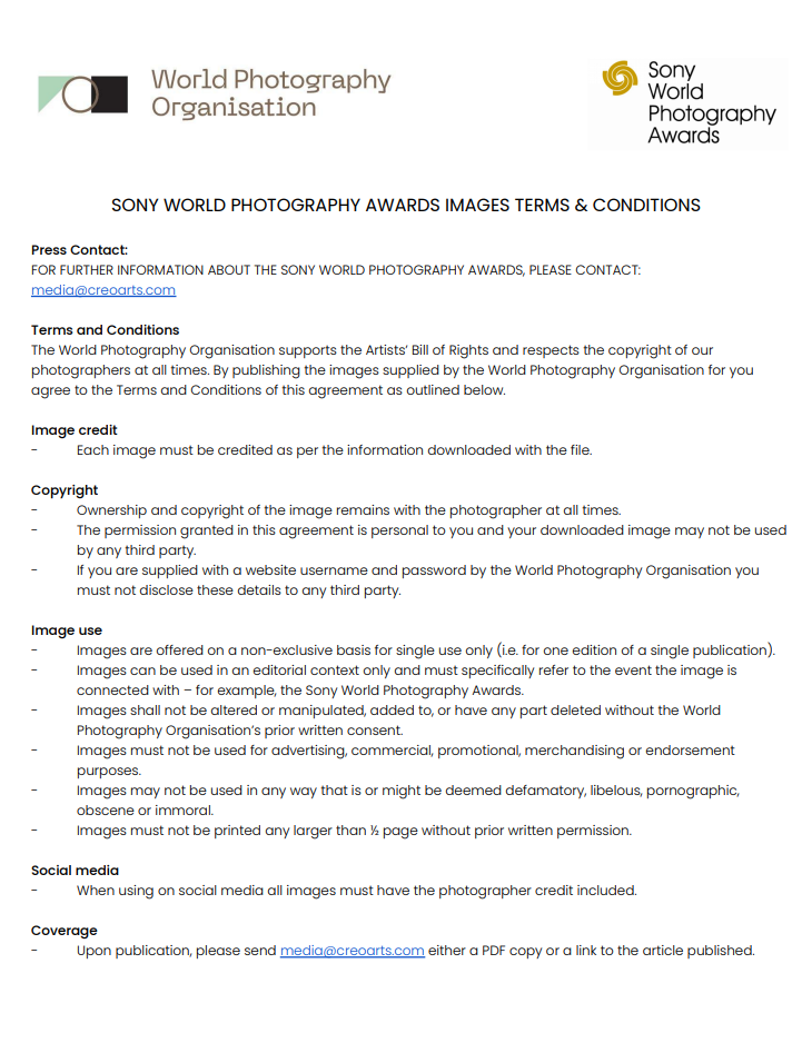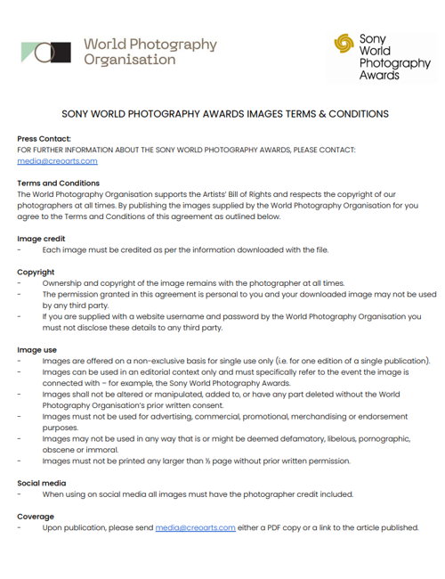 For information on terms and conditions, image credits, copyright, image use, social media and reporting, please see below.