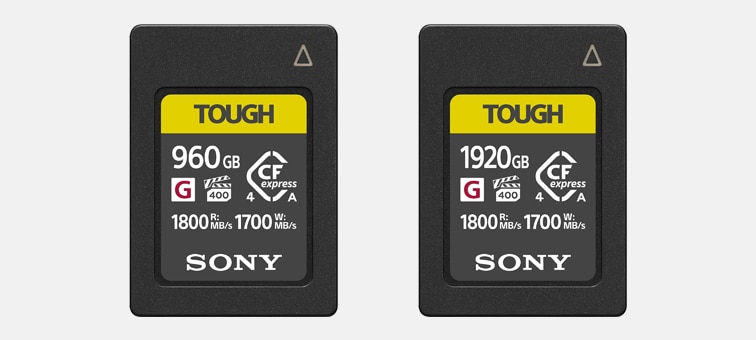Die Karten mit 1.920 GB (CEA-G1920T), 960 GB (CEA-G960T), 480 GB (CEA-G480T) und 240 GB (CEA-G240T) unterstützen den CFexpress 4 Standard für High-Speed-Übertragungen mit VPG (Video Performance Guarantee) 400-Zertifizierung für stabile Aufnahmen. Mit einer fünfmal höheren Sturzfestigkeit und zehnfachen Steifigkeit im Vergleich zum CFexpress Typ A-Standard halten diese Karten auch rauen Bedingungen stand.