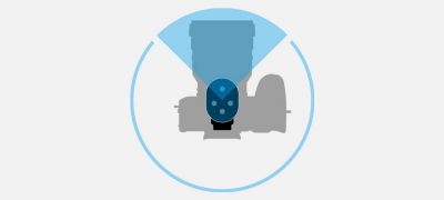 Sound vor und hinter dem Gerät wird mit gleicher Empfindlichkeit erfasst, während Geräusche von rechts und links unterdrückt werden. Der superdirektionale Modus ermöglicht Soundaufzeichnungen vom Motiv vor dem Gerät sowie von der Stimme des Videofilmers und sorgt so für klaren Klang bei der Aufzeichnung von Interviews.