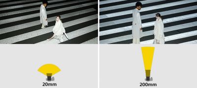 Der Beleuchtungswinkel des Blitzes wird automatisch je nach Brennweite des Objektivs über einen Bereich von 20–200 mm angepasst. Außerdem wird die Lichtverteilung zur optimalen Beleuchtung bei Vollformat oder APS-C angepasst.