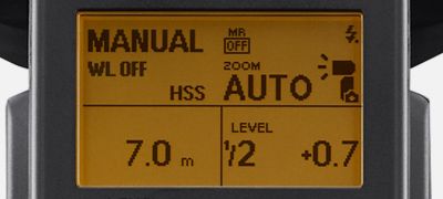 Durch Drücken der Fn-Taste werden neben dem ausgewählten Blitzmodus weitere Parameter auf dem Display angezeigt. So können Sie sie mühelos während verschiedenster Aufnahmesituationen einstellen. Auf dem Display des Vorgänger-Modells HVL-F60RM wurden die Symbole für „WLAN deaktiviert“ und „Speicherabruf deaktiviert“ erst nach Drücken der Fn-Taste angezeigt. Diese Parameter erscheinen nun beim HVL-F60RM2 standardmäßig auf dem Display.