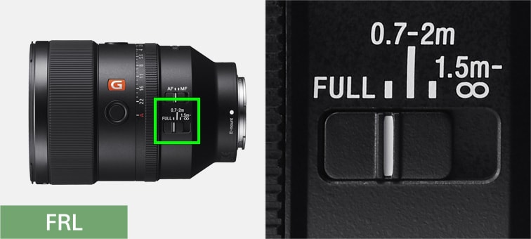 Der Schalter für den Fokusbereichbegrenzer (∞ ~ 1,5 m/2 m ~ 0,7 m) beschleunigt den Autofokus, indem eine Bandbreite voreingestellt wird, und verhindert somit auch den Fokus auf ungewollte Objekte. Die Ferneinstellung (∞ ~ 1.5 m) ist ideal für Porträts aus der Nahe, Halbnahe und Halbtotale, wohingegen die Naheinstellung (2 m ~ 0.7 m) sich am besten für Groß- und Detailaufnahmen eignet.