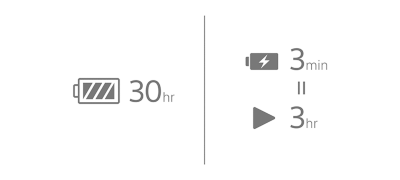 Weiterhören auch bei niedrigem Akkustand? Stecken Sie einfach das USB-Ladekabel ein und genießen Sie weiter Musik. Sowohl Verbindungen über Bluetooth als auch über Audiokabel werden unterstützt. Bei ausgeschalteten Kopfhörern ist eine noch schnellere Aufladung möglich – bis zu 1 Stunde Wiedergabe nach nur 3 Minuten Ladezeit.